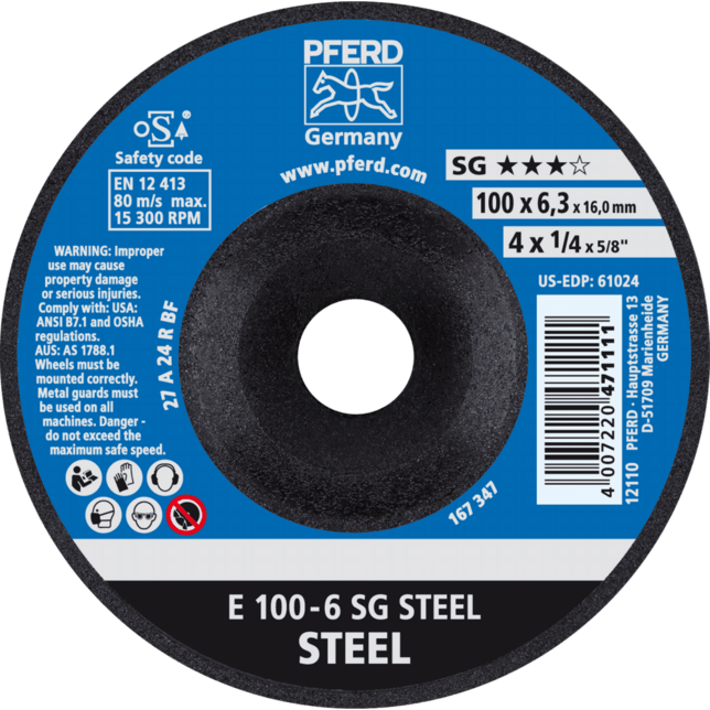 Široká ponuka Performance Line SG ponúka vysoko výkonné riešenie nástrojov pre každú aplikáciu a každý materiál. Nástroje Performance Line SG dosahujú optimálne výsledky s maximálnou hospodárnosťou. Brúsny kotúč na oceľ s vysokým brúsnym výkonom a veľmi dobrou životnosťou nástroja.