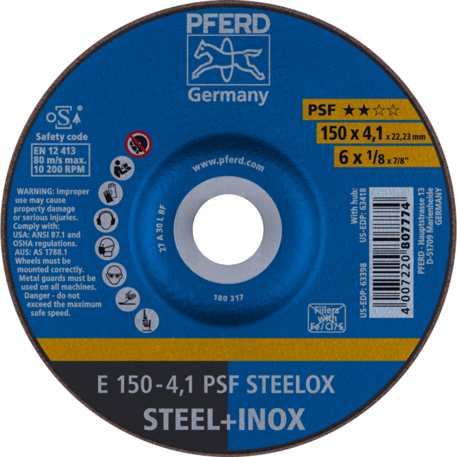 Vstupná rada Universal Line PSF obsahuje robustné náradie na spracovanie najbežnejších materiálov. Náradie Universal Line PSF dosahuje dobré výsledky s vysokou ekonomickou efektívnosťou. Brúsny kotúč na oceľ a nerezovú oceľ (INOX) s vysokým brúsnym výkonom a dobrou životnosťou náradia.