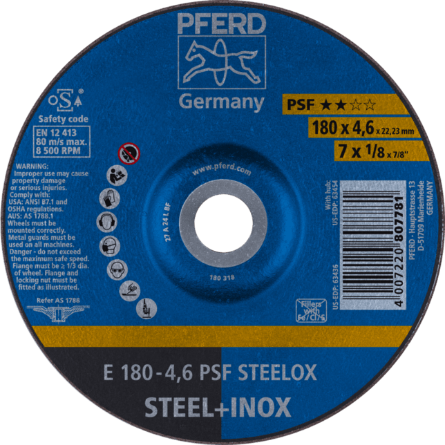 Vstupná rada Universal Line PSF obsahuje robustné náradie na spracovanie najbežnejších materiálov. Náradie Universal Line PSF dosahuje dobré výsledky s vysokou ekonomickou efektívnosťou. Brúsny kotúč na oceľ a nerezovú oceľ (INOX) s vysokým brúsnym výkonom a dobrou životnosťou náradia.