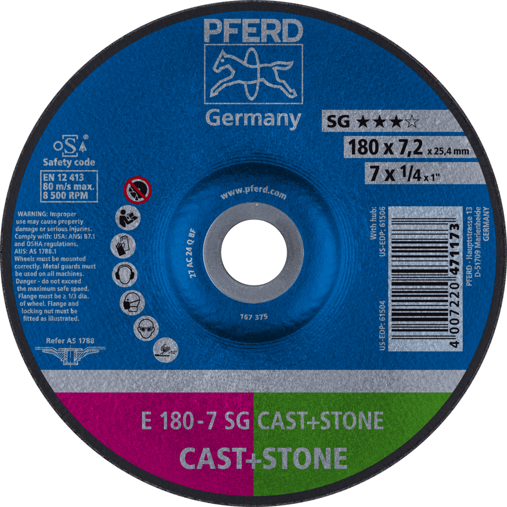 Široká ponuka Performance Line SG ponúka vysoko výkonné riešenie nástrojov pre každú aplikáciu a každý materiál. Nástroje Performance Line SG dosahujú optimálne výsledky s maximálnou hospodárnosťou. Pre ťažké použitie v liatňach a brúsiacich dielňach ponúka PFERD TOOLS obzvlášť robustné brúsne kotúče, ktoré zaručujú maximálnu bezpečnosť a dosahujú špičkový výkon, aj za týchto podmienok. Sú optimalizované na použitie s kompresorovými turbínovými a vysokofrekvenčnými uhlovými brúskami. Brúsny kotúč optimalizovaný na použitie v liatňach a brúsiacich dielňach pre liatinu (tiež: liatinská škála) a tvrdé hliníkové zliatiny s vysokým brúsnym výkonom a veľmi dobrou životnosťou nástroja.