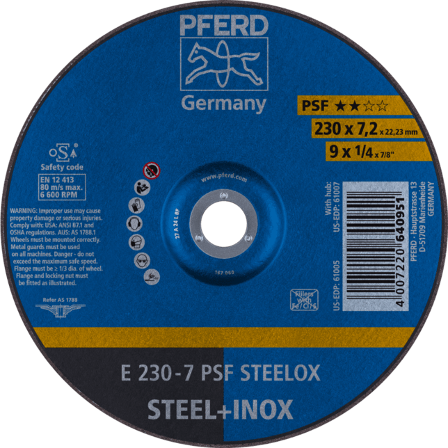 Vstupná rada Universal Line PSF obsahuje robustné náradie na spracovanie najbežnejších materiálov. Náradie Universal Line PSF dosahuje dobré výsledky s vysokou ekonomickou efektívnosťou. Brúsny kotúč na oceľ a nerezovú oceľ (INOX) s vysokým brúsnym výkonom a dobrou životnosťou náradia.
