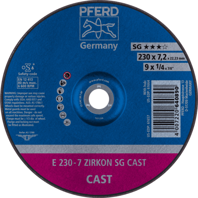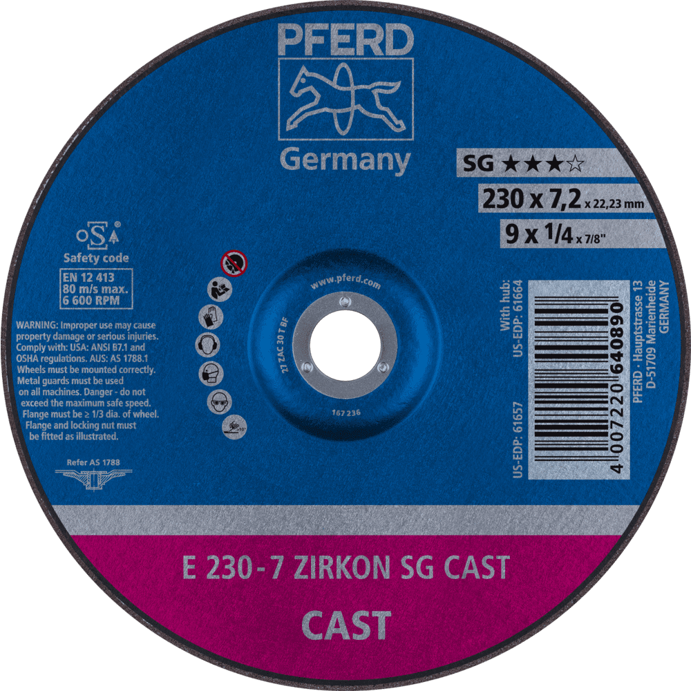 Široká ponuka Performance Line SG ponúka vysoko výkonné riešenie nástrojov pre každú aplikáciu a každý materiál. Nástroje Performance Line SG dosahujú optimálne výsledky s maximálnou hospodárnosťou. Pre ťažké použitie v liatňach a úpravárskych dielňach ponúka PFERD TOOLS obzvlášť robustné brúsne kotúče, ktoré zaručujú maximálnu bezpečnosť a dosahujú špičkový výkon aj za týchto podmienok. Sú optimalizované na použitie s pneumatickými turbínovými a vysokofrekvenčnými uhlovými brúskami. Brúsny kotúč z oxidovanej zirkónie optimalizovaný na použitie v liatňach a úpravárskych dielňach pre liatinové materiály s vynikajúcim brúsnym výkonom a životnosťou nástroja.