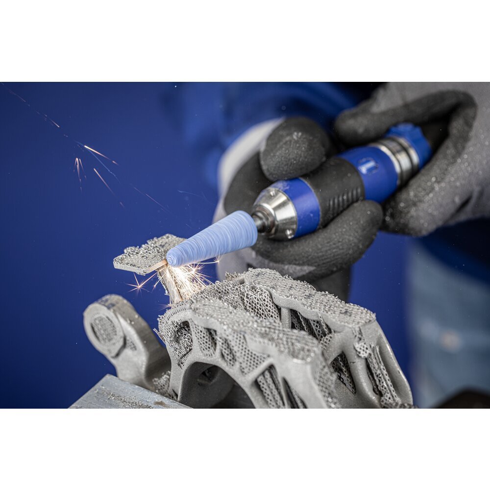 Typ TOUGH je špeciálne navrhnutý na použitie na titánových materiáloch, zliatinách na báze niklu a kobaltu, kalených oceľových komponentoch a nahromadených zváracích depozitoch. Jeho aplikácie zahŕňajú úpravu zvárania na opravách zvárania a prepracovanie turbínových lopatiek počas údržby lietadiel, ako aj prebrúsenie opravných zváraní pri výrobe nástrojov a foriem. Kužeľový tvar KE je navrhnutý pre pohodlnú pracovnú pozíciu počas brúsenia povrchov a brúsenia faziet.