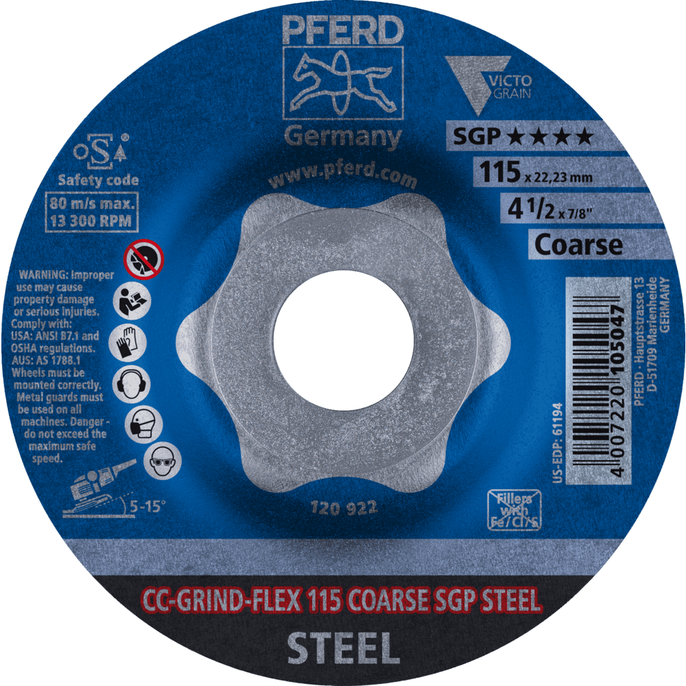 - EFEKTIVITA PFERD TOOLS: EFEKTIVITA PFERD TOOLS odporúča CC-GRIND FLEX s abrazívnym zrnkom VICTOGRAIN na dlhodobú prácu s nízkou únavou, pričom šetrí zdroje a dosahuje dokonalé výsledky čo najrýchlejšie.