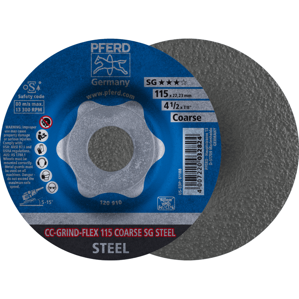 Široká ponuka Performance Line SG ponúka vysoko výkonné riešenie nástrojov pre každú aplikáciu a každý materiál. Nástroje Performance Line SG dosahujú optimálne výsledky s maximálnou hospodárnosťou. CC-GRIND FLEX je poloh flexibilný doplnok k CC-GRIND SOLID. Bol vyvinutý najmä na prácu na zvarových švoch. Zvarové spoje môžu byť úplne vyhladené. To znamená, že hrboly a preliačiny – najmä tie, ktoré sú viditeľné po natieraní alebo lakovaní – sú minulosťou. Poloh flexibilný brúsny kotúč na oceľ s vysokým brúsnym výkonom a maximálnou životnosťou nástroja.