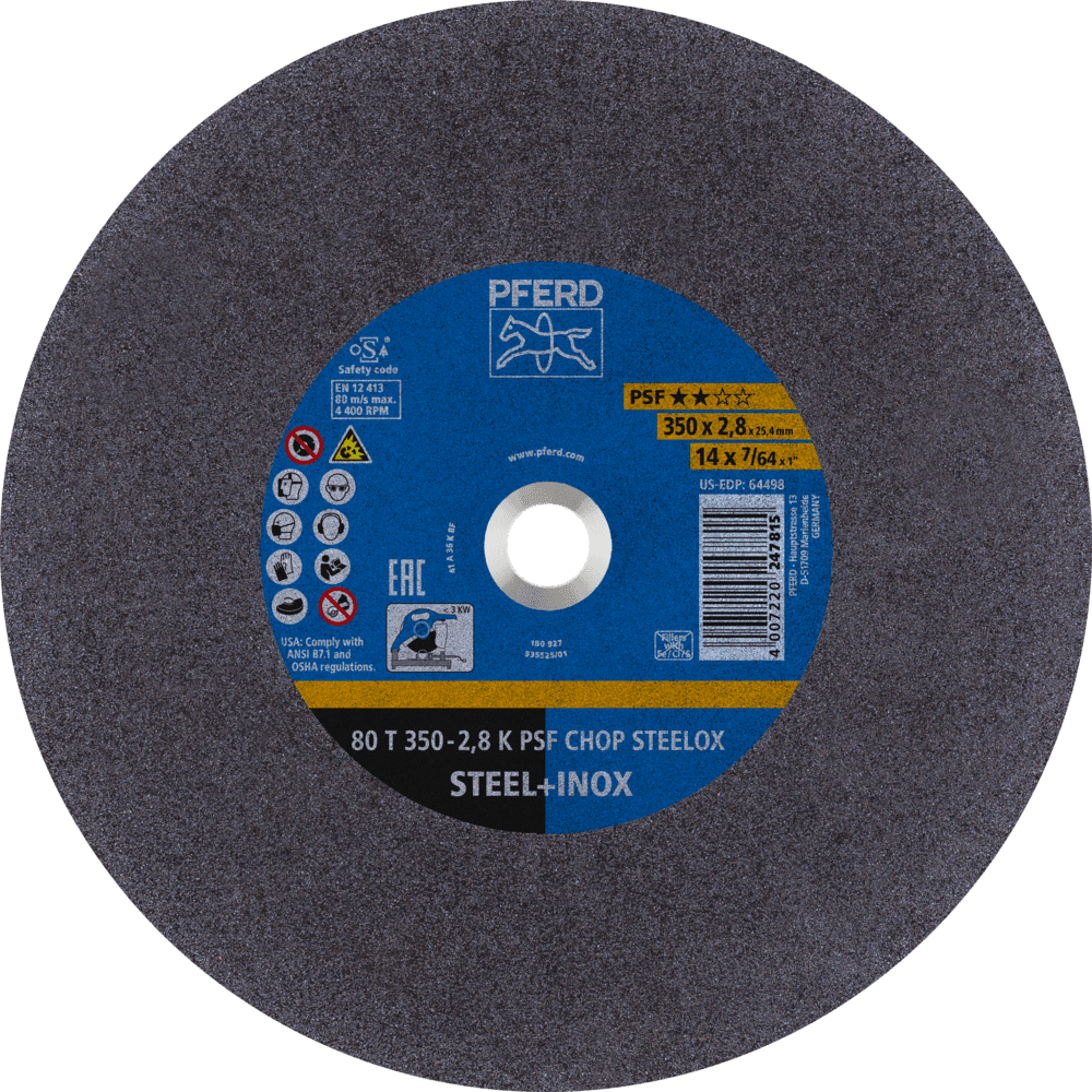 Produktová rada PFERD TOOLS ponúka rezný kotúče pre píly (CHOPSAW) v rôznych verziách a rozmeroch. Rezné kotúče pre píly sa používajú na rezanie pevných materiálov, profilov a rúr. Základná rada Universal Line PSF obsahuje robustné nástroje na spracovanie najbežnejších materiálov. Nástroje Universal Line PSF dosahujú dobré výsledky s vysokou ekonomickou efektívnosťou. Nástroj tvrdosti K, ktorý sa veľmi ľahko reže, s stredným zložením pre oceľ a nerezovú oceľ (INOX). Pre agresívne rezanie s minimálnym vytváraním otupenia.