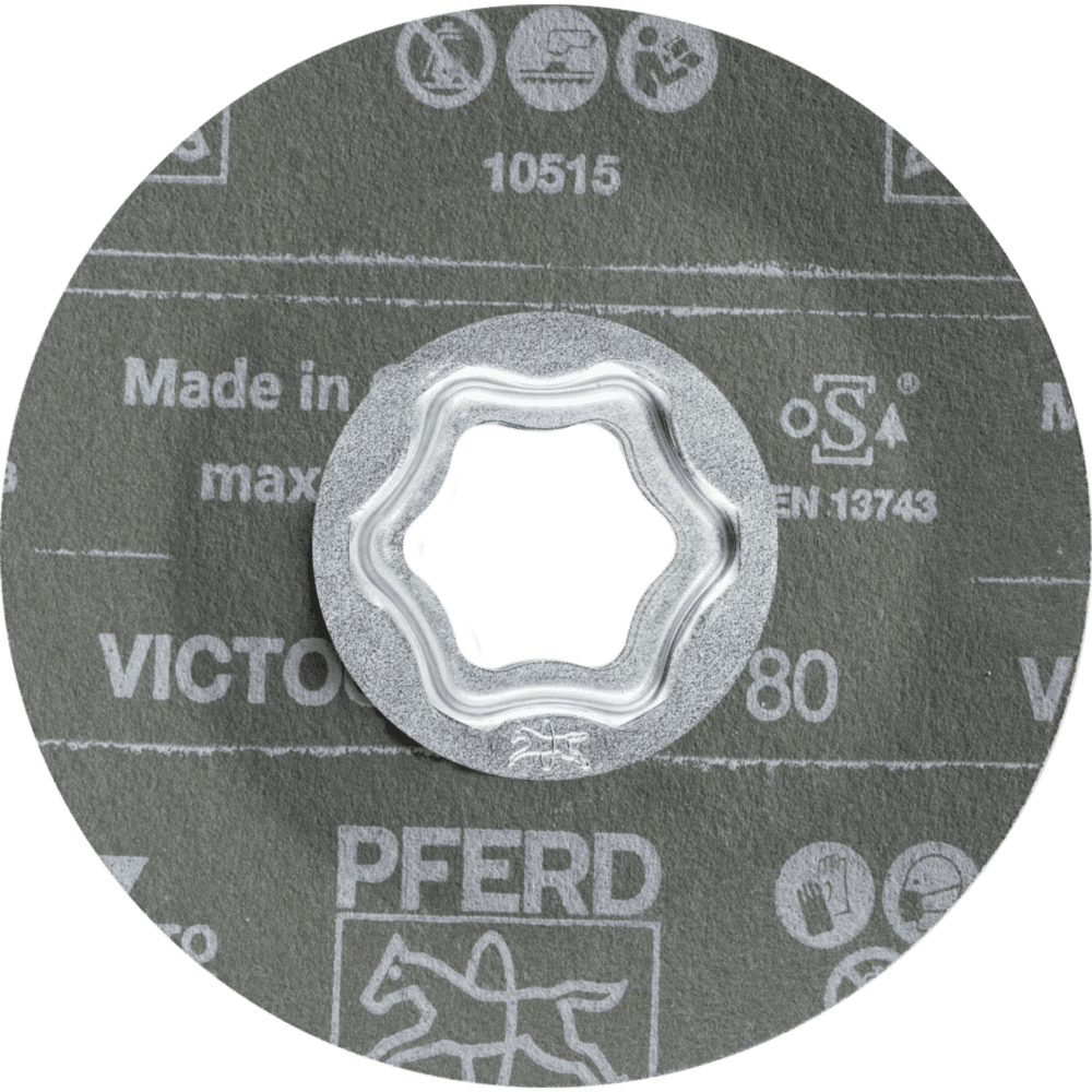 Systém COMBICLICK pozostáva z špeciálne vyvinutého podložného disku a robustného montážneho systému na zadnej strane náradia. S podložným diskom môžu byť náradia COMBICLICK používané na komerčne dostupných uhlových brúskach. Jedinečná geometria chladenia zabezpečuje vysoký prietok vzduchu, čo výrazne znižuje tepelnú záťaž na abrazívny materiál a obrobok. V porovnaní s konvenčnými náradiami dosahuje rýchlomontážny systém, robustný držiak, bezpečnostný zámok náradia a integrovaný chladicí systém spolu teplotu obrobku, ktorá je o 30 % nižšia, o 25 % vyššiu rýchlosť odstraňovania materiálu, o 30 % dlhšiu životnosť náradia a lepšie využitie abrazívneho materiálu. Vlákna PFERD TOOLS sú vyrábané v súlade s ISO 16057 v tvare A1 verzia F pod označením "vulkanizovaný vláknový disk". Pre maximálne agresívne brúsenie s extrémne dlhou životnosťou náradia a vynikajúcou rýchlosťou odstraňovania materiálu na oceľach a materiáloch, ktoré sú tvrdé alebo majú zlé tepelné vodivosti. Vynikajúci, konštantne vysoký výkon vďaka abrazívnemu zrnku VICTOGRAIN. Aktívne brúsiace prísady v povlaku podstatne zlepšujú rýchlosť odstraňovania materiálu, zabraňujú upchávaniu a vedú k chladnejšiemu brúsení.