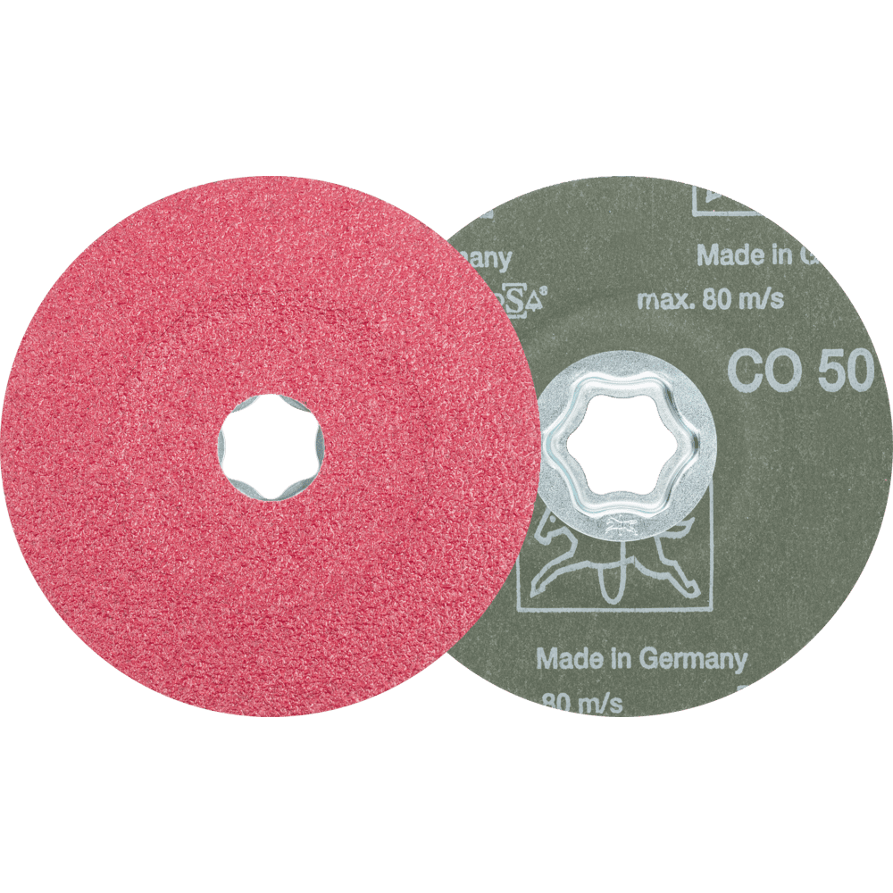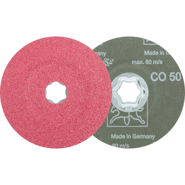 Systém COMBICLICK sa skladá z špeciálne vyvinutého podložného disku a robustného montážneho systému na zadnej strane náradia. S podložným diskom môžu byť nástroje COMBICLICK používané na komerčne dostupných uhlových brúskach. Jedinečná geometria chladiacich otvorov zabezpečuje vysoký prietok vzduchu, čo výrazne znižuje tepelnú záťaž na abrazívny materiál a obrobok. V porovnaní s konvenčnými nástrojmi dosahuje rýchloupínací systém, robustný držiak, bezpečnostný zámok náradia a integrovaný chladiaci systém spolu teplotu obrobku, ktorá je o 30 % nižšia, o 25 % vyššiu rýchlosť odstraňovania materiálu, o 30 % dlhšiu životnosť náradia a lepšie využitie abrazívneho materiálu. Vlákna PFERD TOOLS sú vyrábané v súlade s ISO 16057 v tvare A1 verzia F pod označením "vulkanizovaný vláknový disk". Pre agresívne brúsenie s maximálnou rýchlosťou odstraňovania materiálu a veľmi dlhou životnosťou náradia. Keramický oxidový zrn je špeciálne navrhnutý na prácu s tvrdými materiálmi a vrstvami.