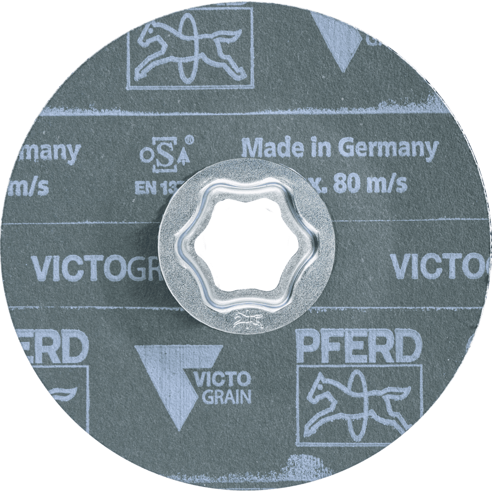 Systém COMBICLICK pozostáva z špeciálne vyvinutého podložného disku a robustného montážneho systému na zadnej strane náradia. S podložným diskom môžu byť náradia COMBICLICK používané na komerčne dostupných uhlových brúskach. Jedinečná geometria chladenia zabezpečuje vysoký prietok vzduchu, čo výrazne znižuje tepelnú záťaž na abrazívny materiál a obrobok. V porovnaní s konvenčnými náradiami dosahuje rýchlomontážny systém, robustný držiak, bezpečnostný zámok náradia a integrovaný chladicí systém spolu teplotu obrobku, ktorá je o 30 % nižšia, o 25 % vyššiu rýchlosť odoberania materiálu, o 30 % dlhšiu životnosť náradia a lepšie využitie abrazívneho materiálu. Vlákna PFERD TOOLS sú vyrábané v súlade s ISO 16057 v tvare A1 verzia F pod označením "vulkanizovaný vláknový disk". Pre maximálne agresívne brúsenie s extrémne dlhou životnosťou náradia a vynikajúcou rýchlosťou odoberania materiálu na oceľ a tvrdé materiály. Vynikajúci, konštantný vysoký výkon vďaka abrazívnemu zrnku VICTOGRAIN. Abrazívne trojuholníky VICTOGRAIN sú pripevnené k substrátu na jednej strane. To znamená, že sú bezpečne upevnené a spolu so svojím štíhlym dizajnom ponúkajú extrémne veľký priestor na triesky, aby sa ďalej zlepšila efektivita obrábania. Štruktúra trojuholníkového VICTOGRAIN bola tiež špeciálne prispôsobená na maximalizáciu výsledkov. Veľmi malé kryštály vo vnútri trojuholníkov zabezpečujú optimálne vlastnosti opotrebenia, pretože ostré rezná hrany sú vždy vystavené, ale len minimálne množstvo abrazívneho zrna/trojuholník sa odlomí. Kombinovaním všetkých týchto vlastností majú používatelia prospech z konečného, konštantného výkonu počas chladného brúsenia a extrémne dlhú životnosť náradia spolu s konzistentnou drsnosťou povrchu obrobku.