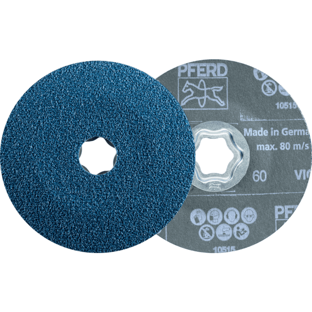 Systém COMBICLICK pozostáva z špeciálne vyvinutého podložného disku a robustného montážneho systému na zadnej strane náradia. S podložným diskom môžu byť náradia COMBICLICK používané na komerčne dostupných uhlových brúskach. Jedinečná geometria chladenia zabezpečuje vysoký prietok vzduchu, čo výrazne znižuje tepelnú záťaž na abrazívny materiál a obrobok. V porovnaní s konvenčnými náradiami dosahuje rýchlomontážny systém, robustný držiak, bezpečnostný zámok náradia a integrovaný chladicí systém spolu teplotu obrobku, ktorá je o 30 % nižšia, o 25 % vyššiu rýchlosť odstraňovania materiálu, o 30 % dlhšiu životnosť náradia a lepšie využitie abrazívneho materiálu. Vlákna PFERD TOOLS sú vyrábané v súlade s ISO 16057 v tvare A1 verzia F pod označením "vulkanizovaný vláknový disk". Pre maximálne agresívne brúsenie s extrémne dlhou životnosťou náradia a vynikajúcou rýchlosťou odstraňovania materiálu na oceľach a materiáloch, ktoré sú tvrdé alebo majú zlé tepelné vodivé vlastnosti. Vynikajúci, konštantne vysoký výkon vďaka abrazívnemu zrna VICTOGRAIN. Aktívne brúsiace prísady v povlaku podstatne zlepšujú rýchlosť odstraňovania materiálu, zabraňujú upchávaniu a vedú k chladnejšiemu brúsení.
