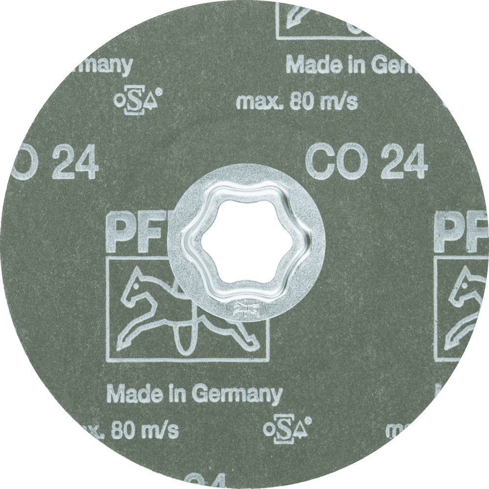 Systém COMBICLICK pozostáva z špeciálne vyvinutého podložného disku a robustného montážneho systému na zadnej strane náradia. S podložným diskom môžu byť nástroje COMBICLICK použité na komerčne dostupných uhlových brúskach. Jedinečná geometria chladiacich otvorov zabezpečuje vysoký prietok vzduchu, čo výrazne znižuje tepelnú záťaž na abrazívny materiál a obrobok. V porovnaní s konvenčnými nástrojmi dosahuje rýchlomontážny systém, robustný držiak, bezpečnostný zámok náradia a integrovaný chladiaci systém spolu teplotu obrobku, ktorá je o 30 % nižšia, o 25 % vyššiu rýchlosť odstraňovania materiálu, o 30 % dlhšiu životnosť náradia a lepšie využitie abrazívneho materiálu. Vlákna PFERD TOOLS sú vyrábané v súlade s ISO 16057 v tvare A1 verzia F pod označením "vulkanizovaný vláknový disk". Pre agresívne brúsenie s maximálnou rýchlosťou odstraňovania materiálu a veľmi dlhou životnosťou náradia. Keramické oxidačné zrno je špeciálne navrhnuté na prácu s tvrdými materiálmi a vrstvami.