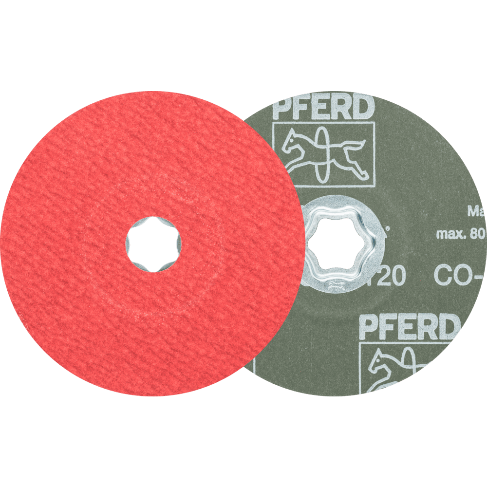 Systém COMBICLICK pozostáva z špeciálne vyvinutého podložného disku a robustného montážneho systému na zadnej strane náradia. S podložným diskom môžu byť nástroje COMBICLICK používané na komerčne dostupných uhlových brúskach. Jedinečná geometria chladenia zabezpečuje vysoký prietok vzduchu, čo výrazne znižuje tepelnú záťaž na abrazívny materiál a obrobok. V porovnaní s konvenčnými nástrojmi dosahuje rýchloupínací systém, robustný držiak, bezpečnostný zámok náradia a integrovaný chladicí systém spolu teplotu obrobku, ktorá je o 30 % nižšia, o 25 % vyššiu rýchlosť odoberania materiálu, o 30 % dlhšiu životnosť náradia a lepšie využitie abrazívneho materiálu. Vlákna PFERD TOOLS sú vyrábané v súlade s ISO 16057 v tvare A1 verzia F pod označením "vulkanizovaný vláknový disk". Pre agresívne brúsenie s maximálnou rýchlosťou odoberania materiálu na tvrdých materiáloch, ktoré zle vedú teplo. Konzistentne vysoký výkon vďaka samoostriacemu keramickému oxidu. Aktívne brúsiace prísady v povlaku podstatne zlepšujú rýchlosť odoberania materiálu, zabraňujú upchávaniu a zabezpečujú chladnejšie brúsenie.