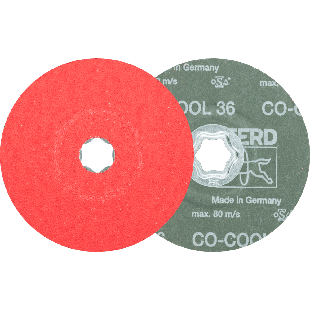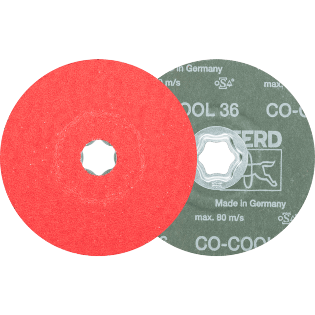 Systém COMBICLICK sa skladá z špeciálne vyvinutého podložného disku a robustného montážneho systému na zadnej strane náradia. S podložným diskom môžu byť náradia COMBICLICK používané na komerčne dostupných uhlových brúskach. Jedinečná geometria chladiacich otvorov zabezpečuje vysoký prietok vzduchu, čo výrazne znižuje tepelnú záťaž na abrazívny materiál a obrobok. V porovnaní s konvenčnými náradiami dosahuje rýchlomontážny systém, robustný držiak, bezpečnostný zámok náradia a integrovaný chladiaci systém spolu teplotu obrobku, ktorá je o 30 % nižšia, o 25 % vyššiu rýchlosť odstraňovania materiálu, o 30 % dlhšiu životnosť náradia a lepšie využitie abrazívneho materiálu. Vlákna PFERD TOOLS sú vyrábané v súlade s ISO 16057 v tvare A1 verzia F pod označením "vulkanizovaný vláknový disk". Pre agresívne brúsenie s maximálnou rýchlosťou odstraňovania materiálu na tvrdých materiáloch, ktoré zle vedú teplo. Konzistentne vysoký výkon vďaka samoostriacemu keramickému oxidu. Aktívne brúsiace prísady v povlaku podstatne zlepšujú rýchlosť odstraňovania materiálu, zabraňujú upchávaniu a zabezpečujú chladnejšie brúsenie.