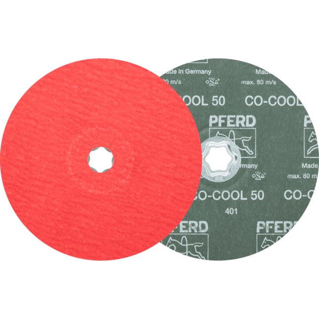 Systém COMBICLICK pozostáva z špeciálne vyvinutého podložného disku a robustného montážneho systému na zadnej strane náradia. S podložným diskom môžu byť náradia COMBICLICK používané na komerčne dostupných uhlových brúskach. Jedinečná geometria chladenia zabezpečuje vysoký prietok vzduchu, čo výrazne znižuje tepelnú záťaž na abrazívny materiál a obrobok. V porovnaní s konvenčnými náradiami dosahuje rýchlomontážny systém, robustný držiak, bezpečnostný zámok náradia a integrovaný chladicí systém spolu teplotu obrobku, ktorá je o 30 % nižšia, o 25 % vyššiu rýchlosť odstraňovania materiálu, o 30 % dlhšiu životnosť náradia a lepšie využitie abrazívneho materiálu. Vlákna PFERD TOOLS sú vyrábané v súlade s ISO 16057 v tvare A1 verzia F pod označením "vulkanizovaný vláknový disk". Pre agresívne brúsenie s maximálnou rýchlosťou odstraňovania materiálu na tvrdých materiáloch, ktoré zle vedú teplo. Konzistentne vysoký výkon vďaka samoostriacemu keramickému oxidu. Aktívne brúsiace prísady v povlaku podstatne zlepšujú rýchlosť odstraňovania materiálu, zabraňujú upchávaniu a vedú k chladnejšiemu brúsenie.