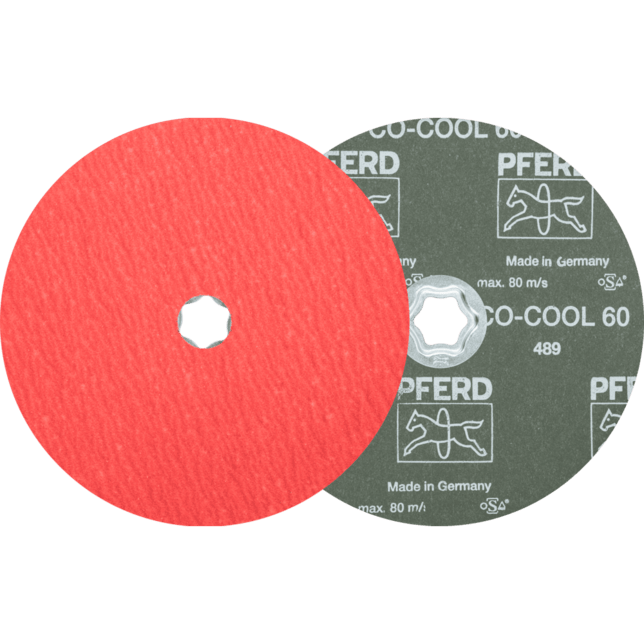 Systém COMBICLICK pozostáva z špeciálne vyvinutého podložného disku a robustného montážneho systému na zadnej strane náradia. S podložným diskom môžu byť náradia COMBICLICK používané na komerčne dostupných uhlových brúskach. Jedinečná geometria chladenia zabezpečuje vysoký prietok vzduchu, čo výrazne znižuje tepelnú záťaž na abrazívny materiál a obrobok. V porovnaní s konvenčnými náradiami dosahuje rýchloupínací systém, robustný držiak, bezpečnostný zámok náradia a integrovaný chladicí systém spolu teplotu obrobku, ktorá je o 30 % nižšia, o 25 % vyššiu rýchlosť odstraňovania materiálu, o 30 % dlhšiu životnosť náradia a lepšie využitie abrazívneho materiálu. Vlákna PFERD TOOLS sú vyrábané v súlade s ISO 16057 v tvare A1 verzia F pod označením "vulkanizovaný vláknový disk". Pre agresívne brúsenie s maximálnou rýchlosťou odstraňovania materiálu na tvrdých materiáloch, ktoré zle vedú teplo. Konzistentne vysoký výkon vďaka samoostriacemu keramickému oxidu. Aktívne brúsiace prísady v povlaku podstatne zlepšujú rýchlosť odstraňovania materiálu, zabraňujú upchávaniu a vedú k chladnejšiemu brúsenie.