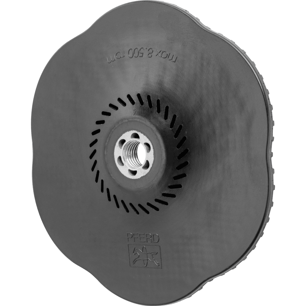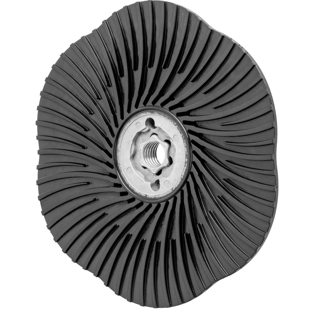 So zadným podložím je možné používať náradie COMBICLICK na bežne dostupných uhlových brúskach. Systém COMBICLICK pozostáva z osobitne vyvinutého zadného podložia a robustného montážneho systému na zadnej strane náradia. Jedinečná geometria chladiacich otvorov zabezpečuje vysoký prietok vzduchu, čo výrazne znižuje tepelnú záťaž na abrazívny materiál a obrobok. V porovnaní s konvenčnými náradiami dosahuje rýchlosť montáže, robustný držiak, bezpečnostný zámok náradia a integrovaný chladiaci systém spolu teplotu obrobku, ktorá je o 30 % nižšia, o 25 % vyššiu rýchlosť odstraňovania materiálu, o 30 % dlhšiu životnosť náradia a lepšie využitie abrazívneho materiálu. Tvrdosť CC-GT (stredná) = čierna