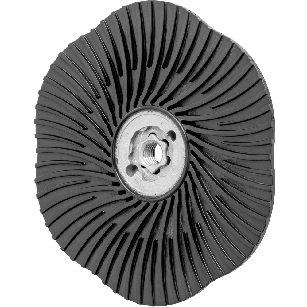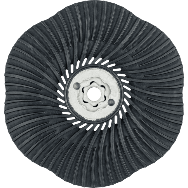 So týmto podložným tanierom je možné používať náradie COMBICLICK na bežne dostupných uhlových brúskach. Systém COMBICLICK pozostáva z osobitne vyvinutého podložného taniera a robustného montážneho systému na zadnej strane náradia. Jedinečná geometria chladacích otvorov zabezpečuje vysoký prietok vzduchu, čo výrazne znižuje tepelnú záťaž na abrazívny materiál a obrobok. V porovnaní s konvenčnými náradiami dosahuje rýchlosť montáže, robustný držiak, bezpečnostný zámok náradia a integrovaný chladicí systém spolu teplotu obrobku, ktorá je o 30 % nižšia, o 25 % vyššiu rýchlosť odstraňovania materiálu, o 30 % dlhšiu životnosť náradia a lepšie využitie abrazívneho materiálu. Tvrdosť CC-GT (stredná) = čierna