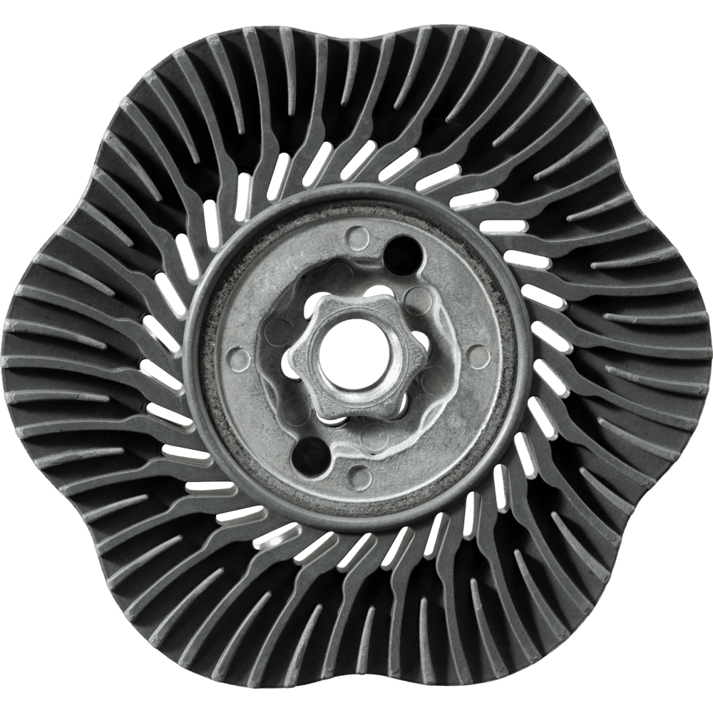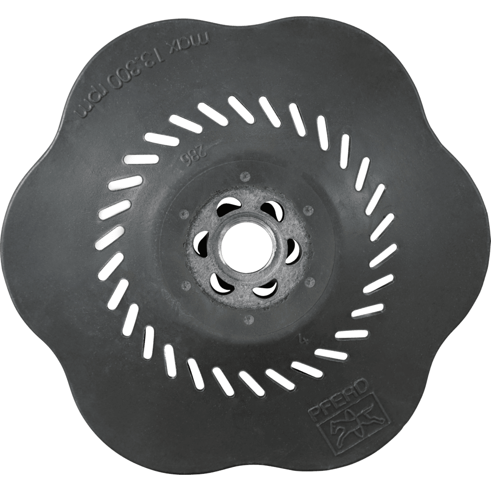 So zadným podložím je možné používať náradie COMBICLICK na komerčne dostupných uhlových brúskach. Systém COMBICLICK pozostáva z osobitne vyvinutého zadného podložia a robustného montážneho systému na zadnej strane náradia. Jedinečná geometria chladenia zabezpečuje vysoký prietok vzduchu, čo výrazne znižuje tepelnú záťaž na abrazívny materiál a obrobok. V porovnaní s konvenčnými náradiami rýchlomontážny systém, robustný držiak, bezpečnostný zámok náradia a integrovaný chladicí systém spoločne dosahujú teplotu obrobku, ktorá je o 30 % nižšia, o 25 % vyššiu rýchlosť odstraňovania materiálu, o 30 % dlhšiu životnosť náradia a lepšie využitie abrazívneho materiálu. Tvrdosť CC-S-GT (mäkká) = šedá