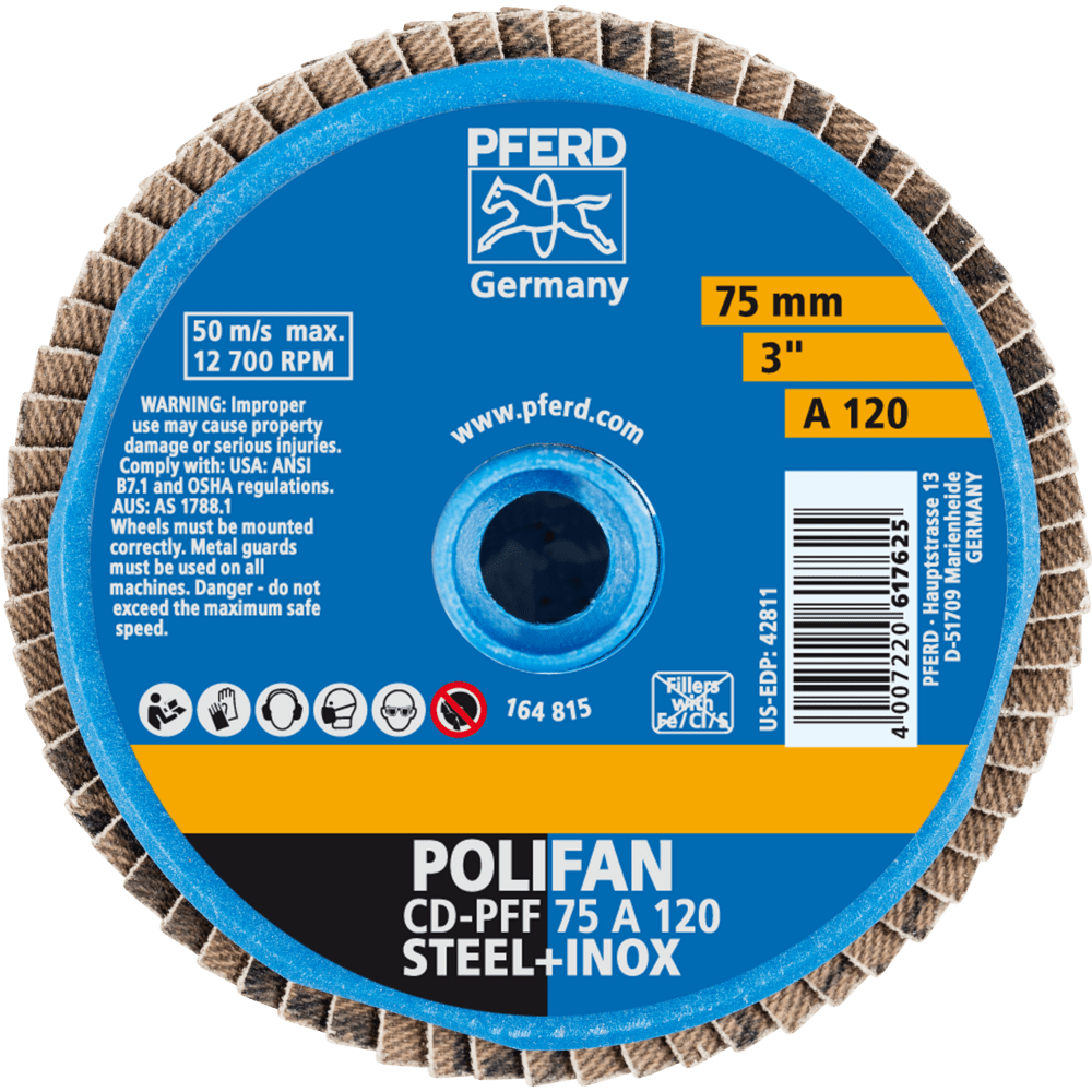 Na všeobecnú hrubú brúsenie s vysokými rýchlosťami odstraňovania materiálu. Ideálne na úpravu zvarových švov na ťažko prístupných miestach. Dlhšia životnosť náradia a vyššia rýchlosť odstraňovania materiálu v porovnaní s brúsnymi kotúčmi. CD upínací systém má závitové spojenie s vnútorným závitom (kov/plast) na strane náradia. Taktiež vhodné pre nasledujúce bežne používané systémy: PSG, Power Lock Type II "zapnúť", SocAtt, Turn-On.