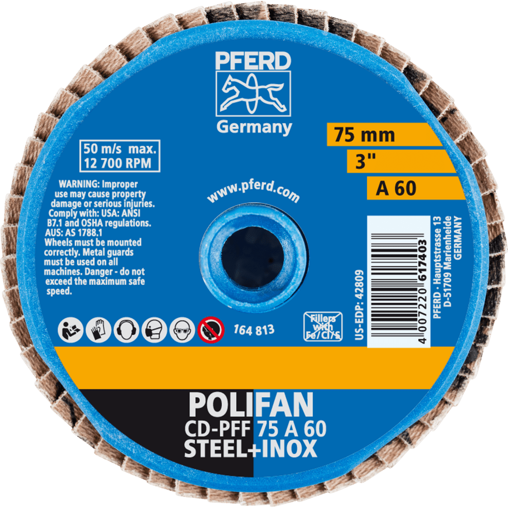 Na všeobecnú hrubú brúsenie s vysokými rýchlosťami odstraňovania materiálu. Ideálne na úpravu zvarových švov na ťažko prístupných miestach. Dlhšia životnosť nástroja a vyššia rýchlosť odstraňovania materiálu v porovnaní s brúsnymi kotúčmi. CD upínací systém má závitové spojenie s vnútorným závitom (kov/plast) na strane nástroja. Taktiež vhodné pre nasledujúce bežne používané systémy: PSG, Power Lock Type II "zapnúť", SocAtt, Turn-On.