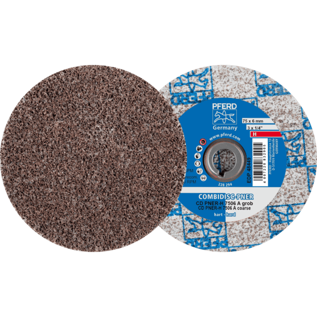 - Používajte COMBIDISC netkané disky s držiakom abrazívnych diskov na flexibilných hriadeľových pohonoch s uhlovým rukoväťou alebo malými uhlovými brúskami na stlačený vzduch alebo elektrickými.