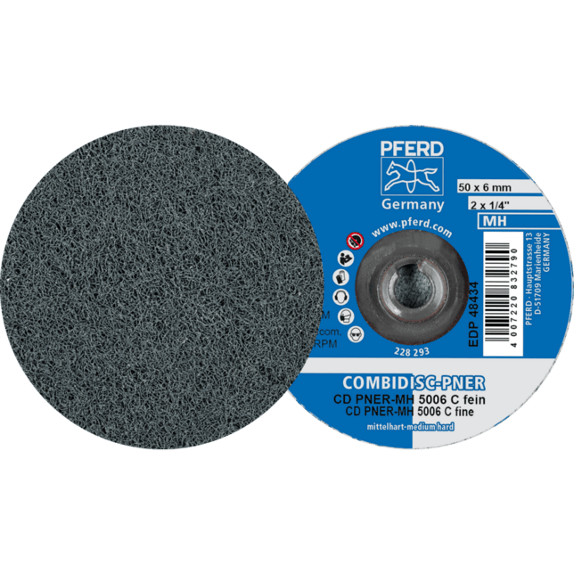 - Používajte COMBIDISC netkané disky s držiakom abrazívnych diskov na flexibilných hriadeľových pohonoch s uhlovým rukoväťou alebo malými uhlovými brúskami na stlačený vzduch alebo elektrickými.