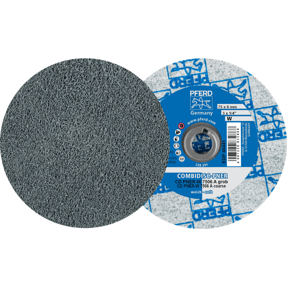 - Používajte COMBIDISC netkané disky s držiakom abrazívneho disku na flexibilných hriadeľových pohonoch s uhlovým rukoväťou alebo malými uhlovými brúskami na stlačený vzduch alebo elektrickými.