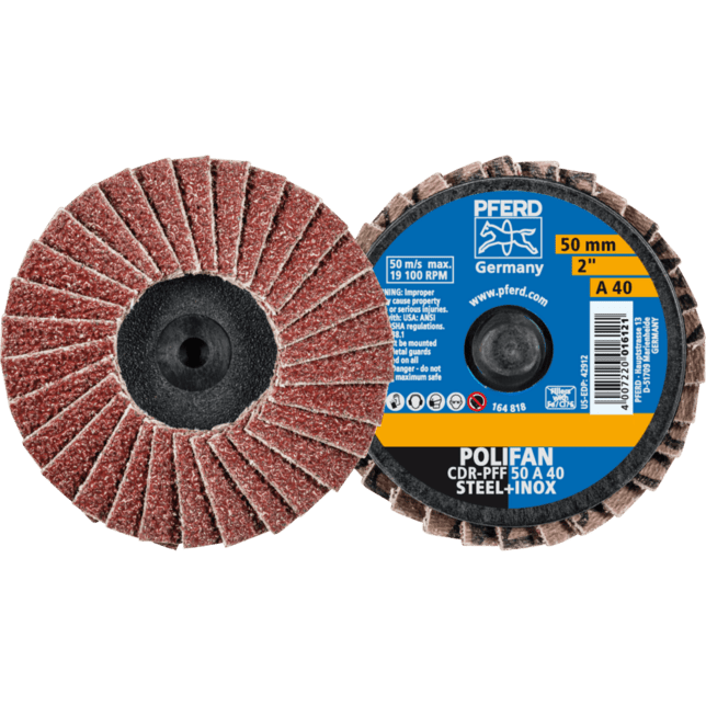 Na všeobecnú hrubú brúsenie s vysokými rýchlosťami odstraňovania materiálu. Ideálne na úpravu zvarových švov na ťažko prístupných miestach. Dlhšia životnosť nástroja a vyššia rýchlosť odstraňovania materiálu v porovnaní s brúsnymi kotúčmi. CDR upínací systém má závitové spojenie s vonkajším závitom (plast) na strane nástroja. Taktiež vhodné pre nasledujúce bežne používané systémy: Roloc™, Lockit, Speed Lok TR, Power Lock Type III, Fastlock-System B, Roll-On.