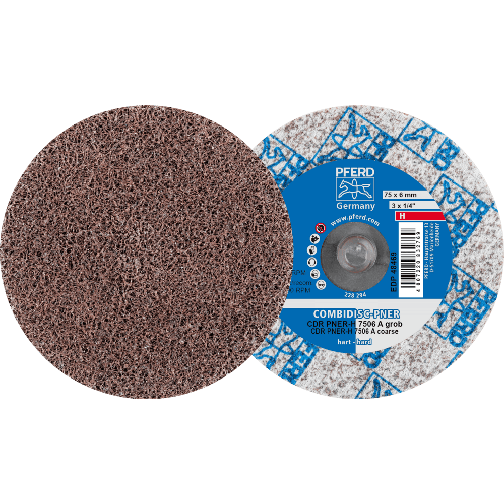 - Používajte COMBIDISC netkané kotúče s držiakom abrazívneho kotúča na flexibilných hriadeľových pohonoch s uhlovým rukoväťou alebo malými uhlovými brúskami na stlačený vzduch alebo elektrickými.