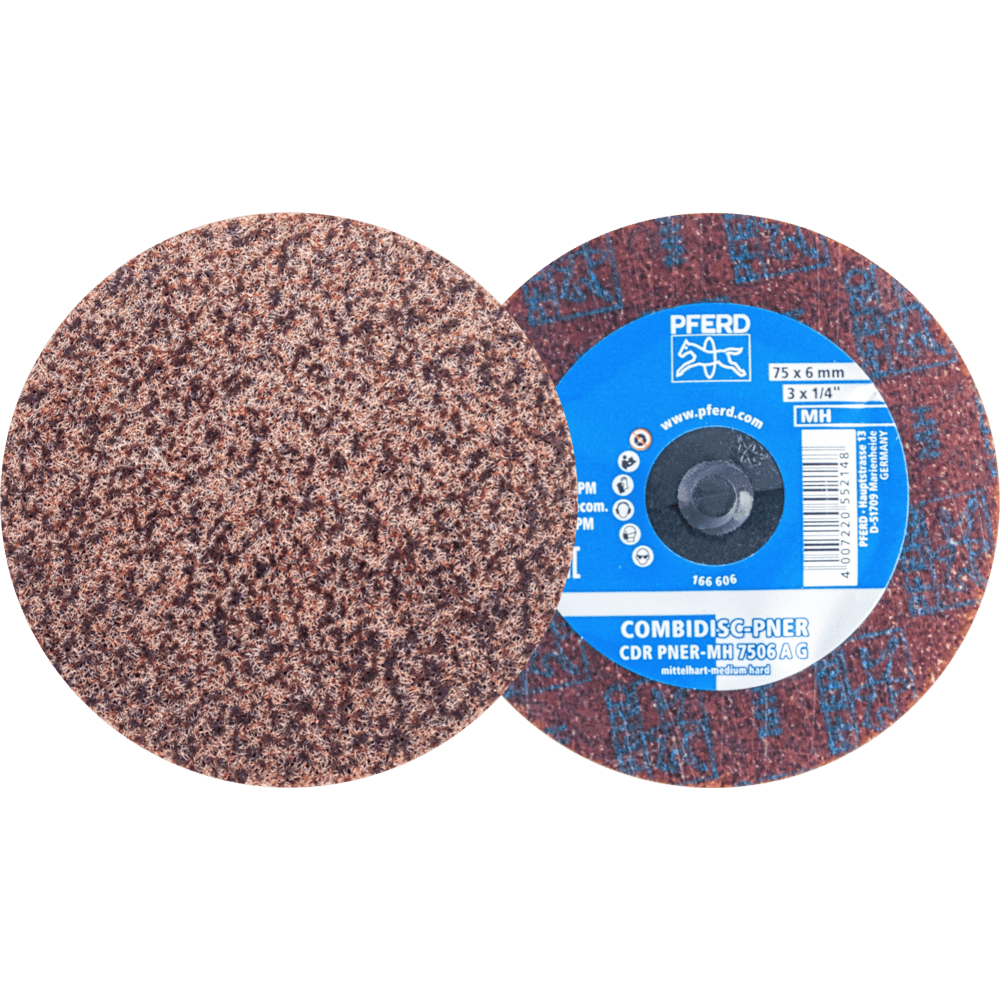 - Používajte COMBIDISC netkané kotúče s držiakom abrazívneho kotúča na flexibilných hriadeľových pohonoch s uhlovým ručným nástrojom alebo malými uhlovými brúskami na stlačený vzduch alebo elektrickými uhlovými brúskami.