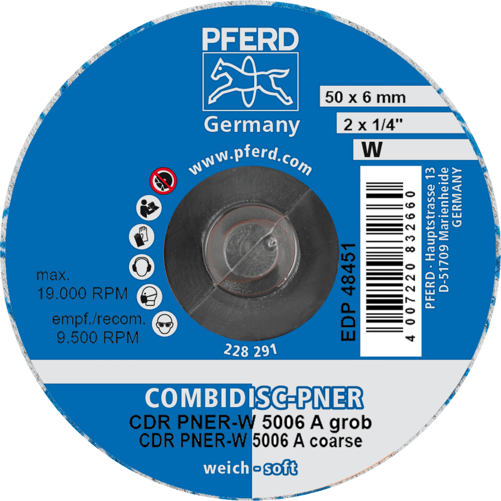 - Používajte COMBIDISC netkané kotúče s držiakom abrazívneho kotúča na flexibilných hriadeľových pohonoch s uhlovým rukoväťou alebo malými uhlovými brúskami na stlačený vzduch alebo elektrickými uhlovými brúskami.