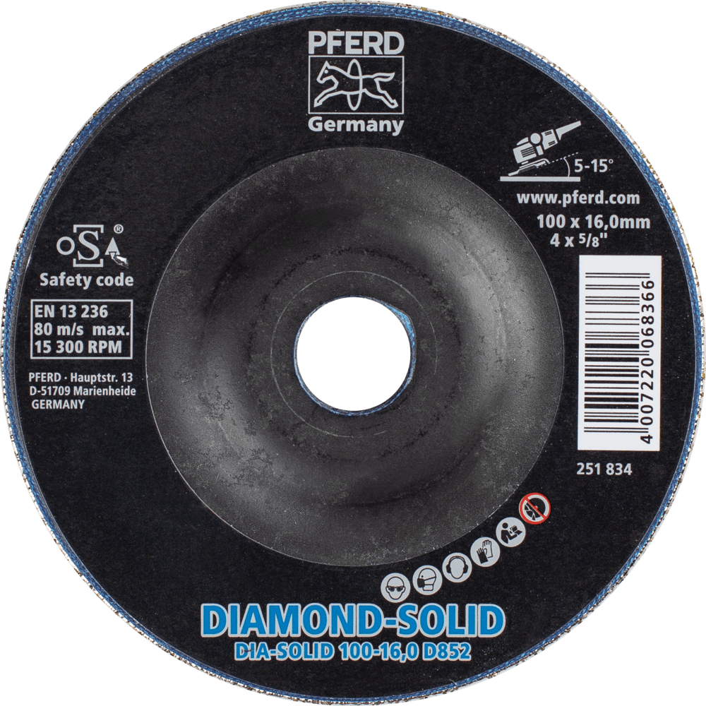 - EFEKTIVITA PFERD TOOLS: EFEKTIVITA PFERD TOOLS odporúča brúsny disk CC-GRIND SOLID-DIAMOND na dlhodobú prácu s nízkou únavou, pričom šetrí zdroje a dosahuje dokonalé výsledky čo najrýchlejšie.