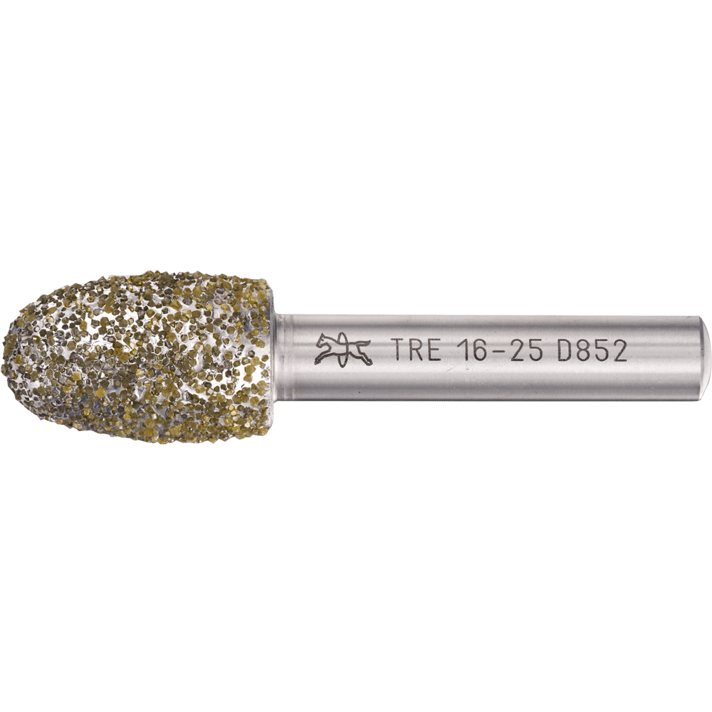 Elektrolyticky pokovené diamantové a CBN brúsky sa používajú na mokré aj suché brúsenie. Diamantové brúsky s veľkosťou zrna D 852 sú mimoriadne vhodné na obrábanie šedého liateho železa a nodulárneho liateho železa (GG a GGG alebo GJL a GJS). N = neostrihnutý hriadeľ