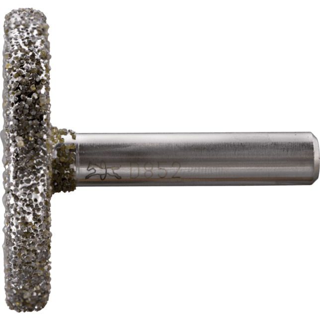 Elektrolyticky pokovené diamantové a CBN brúsky sa používajú na mokré aj suché brúsenie. Diamantové brúsky s veľkosťou zrna D 852 sú mimoriadne vhodné na obrábanie šedého liateho železa a nodulárneho liateho železa (GG a GGG alebo GJL a GJS). N = neostrihnutý hriadeľ