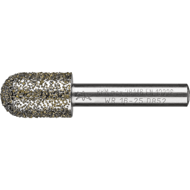 Elektrolyticky pokovené diamantové a CBN brúsky sa používajú na mokré aj suché brúsenie. Diamantové brúsky s veľkosťou zrna D 852 sú mimoriadne vhodné na obrábanie šedého liateho železa a nodulárneho liateho železa (GG a GGG alebo GJL a GJS). N = neostrihnutý hriadeľ