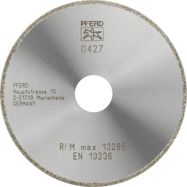 - Odporúčania na použitie: Hrubá veľkosť zrna D 427 je vhodná na rezanie predsinterovanej keramiky a na orezávanie a rezanie plastov vystužených vláknami (GRP/CRP) na požadovanú veľkosť.