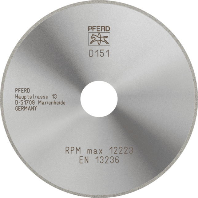- Odporúčania na použitie: Jemná veľkosť zrna D 151 je vhodná na rezanie skla, keramiky a karbidu volfrámu. Pre malé geometrie je tiež vhodná na orezávanie a rezanie sklených kompozitov (GRP/CRP) na požadovanú veľkosť.