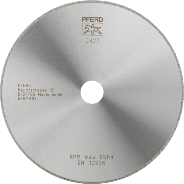 - Odporúčania na použitie: Hrubá veľkosť zrna D 427 je vhodná na rezanie predlisovaných keramík a na orezávanie a rezanie plastov vystužených vláknami (GRP/CRP) na požadovanú veľkosť.
