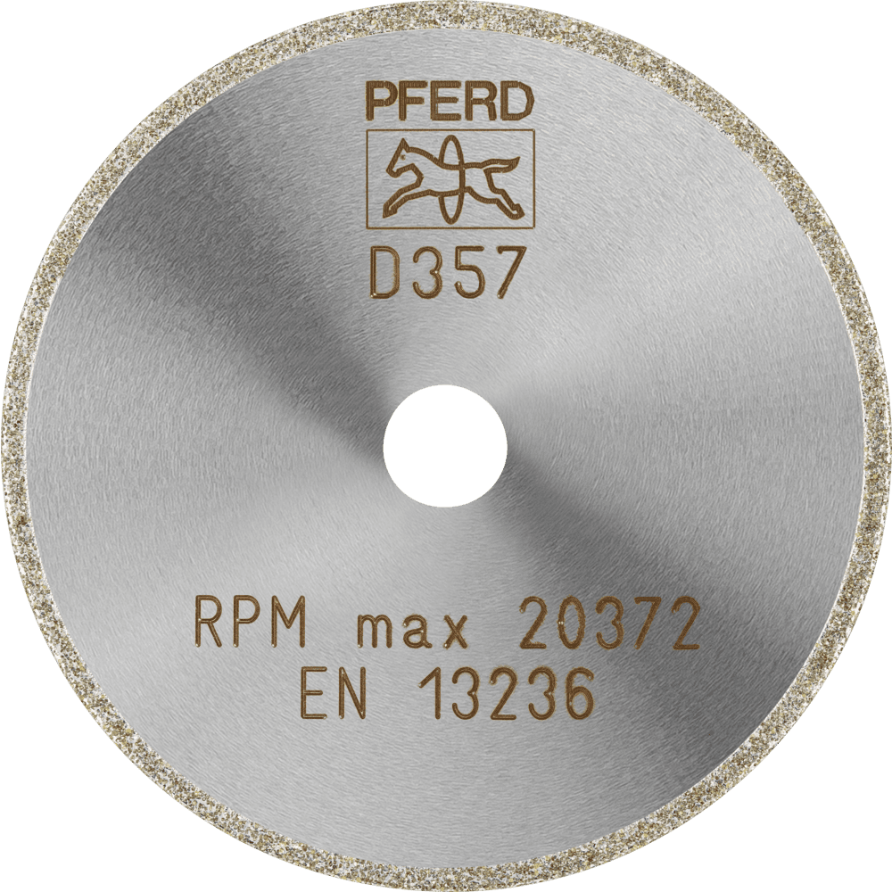 - Odporúčania na použitie: Hrubá veľkosť zrna D 357 je vhodná na rezanie predzlisovaných keramík a na orezávanie a rezanie plastov vystužených vláknami (GRP/CRP) na požadovanú veľkosť.