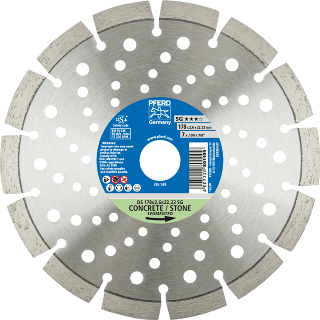 - Všetky diamantové rezná kotúče s priemerom otvoru 25.4 mm sú dodávané s redukčným krúžkom na 22.23 mm na použitie na uhlových brúskach.
