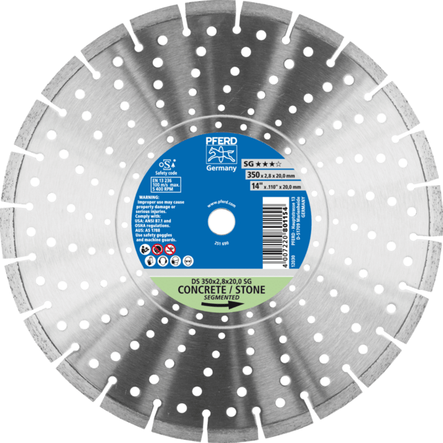 - Maximálna prevádzková rýchlosť pre diamantové reznice typu DS s priemerom 300 až 400 mm je 100 m/s.