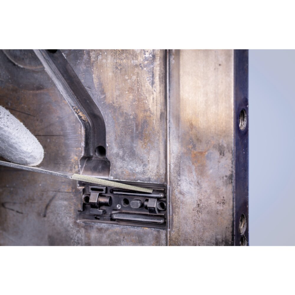 - Naložené diamantové pilníky je možné čistiť v petroleji alebo antistatickým plastovým čističom s pilníkovou kefou. Alternatívne je tiež možné ultrazvukové čistenie. Často stačí ťuknúť pilníkom o tvrdý predmet.