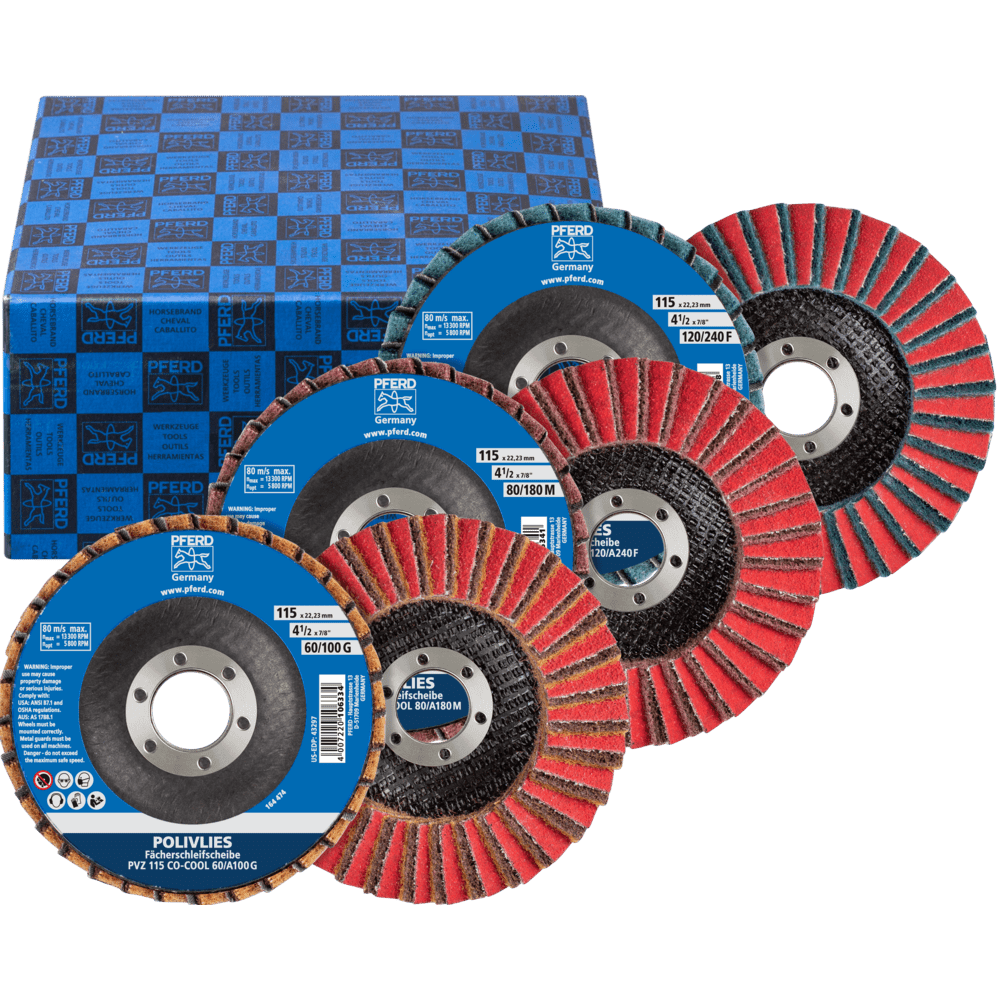 Nepremokavé abrazíva sa osvedčujú tam, kde iné brúsky dosahujú svoje limity a nie sú schopné dosiahnuť požadované výsledky. Elastické vlastnosti polyamidových vlákien a pozitívny účinok nepremokavého abrazíva vedú k vynikajúcim, jemným dokončovacím nástrojom. Abrazívne vlastnosti nepremokavých nástrojov sú prispôsobené rôznym aplikáciám a poskytujú vynikajúce riešenie pre mnohé aplikácie v spracovaní kovov a dokončovaní. Sú tiež vhodné na prácu s inými ťažko brúsiteľnými materiálmi, ako sú keramika, sklo a plast. Nepremokavé abrazíva pozostávajú z polyamidových vlákien, syntetických živíc a abrazívneho zrna. Veľmi voľné spojenia medzi jednotlivými vláknami zabezpečujú vysokú úroveň flexibility a dávajú silný pružinový efekt nepremokavému materiálu. Je flexibilný a poddajný a zanecháva veľmi charakteristickú povrchovú štruktúru. Saténový brúsiaci výsledok je jedinečný a nemožno ho dosiahnuť s inými abrazívami. Sada obsahuje POLIVLIES lamelové kotúče vhodné pre výber rôznych aplikácií, navrhnuté na agresívne brúsenie s maximálnou rýchlosťou odstraňovania materiálu na tvrdých materiáloch, ktoré zle vedú teplo.