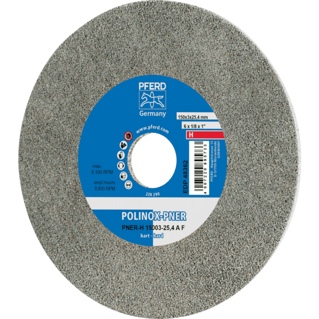 POLINOX jednotné kotúče PNER sa skladajú z viacerých silno stlačených, netkaných vrstiev, ktoré sú spojené špeciálnym systémom zrna/živice. Rôzne kombinácie stlačenia, vlákien, zrna a vhodného spojiva vedú k netkaným produktom, ktoré ponúkajú veľmi dobrý povrchový finiš, vysokú rýchlosť odstraňovania materiálu a dlhú životnosť nástroja. Tieto nástroje sa dajú použiť na široké spektrum prác na povrchoch, od relatívne hrubého brúsenia po prípravu povrchu na leštenie. Verzia pre uhlové brúsky a brúsky na zvarové rohy je obzvlášť vhodná na prácu na zvarových rohoch a ťažko prístupných štrbinách a preliačinách. Tvrdá verzia s veľmi vysokou rýchlosťou odstraňovania materiálu, dobrou pevnosťou hrán a dlhou životnosťou nástroja pre náročné odhrotovanie a leštenie.