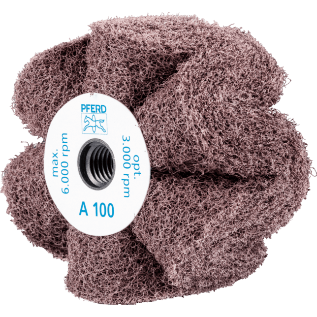POLINOX neosadené brúsne kotúče pozostávajú z netkanej polyamidovej abrazívnej hmoty, do ktorej je integrovaný abrazívny zrn. Netkaný abrazívny materiál je usporiadaný v niekoľkých radiálnych chlopniach, s abrazívnymi textilnými medzi vrstvami. Štruktúra chlopní uľahčuje lepšie odstraňovanie materiálu a dosahuje hrubší povrchový finiš. Nástroj je navrhnutý na prácu na stredne veľkých plochách s rýchlosťou nastaviteľnými uhlovými brúskami a brúskami na zvarové švy a môže byť namontovaný priamo na vretene pohonného systému bez potreby ďalších upínacích zariadení.