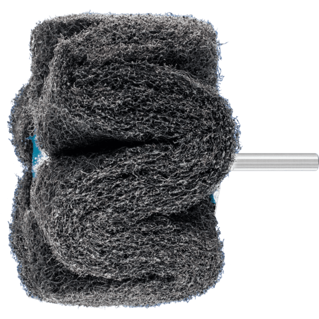 POLINOX nasadené brúsne kotúče pozostávajú z netkanej polyamidovej abrazívnej hmoty, do ktorej je integrovaný abrazívny zrn. Sú vyrobené z niekoľkých veľmi vlnito usporiadaných pruhov netkanej abrazívnej hmoty, navinutých okolo jadra. Vlnitá štruktúra netkanej abrazívnej hmoty umožňuje bezproblémové matovanie povrchov.