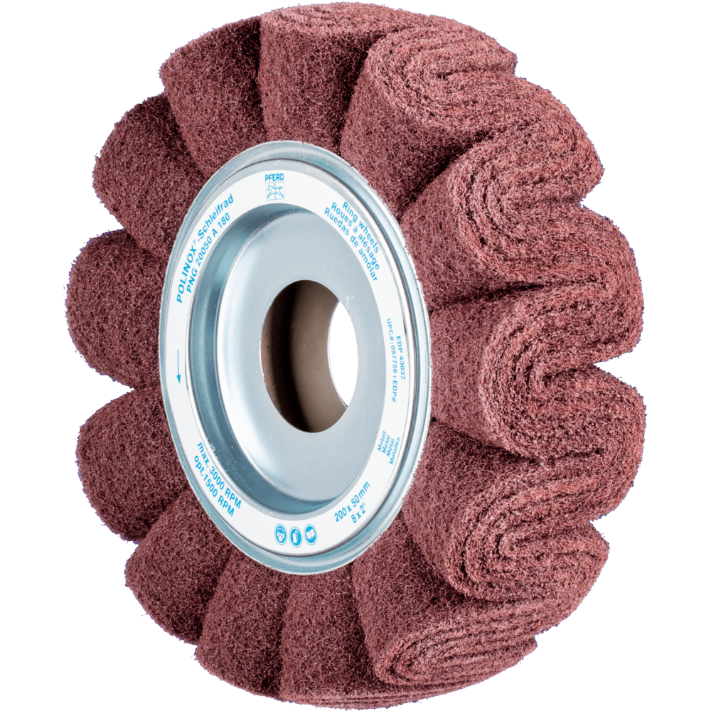 POLINOX neosadené brúsne kotúče pozostávajú z netkanej polyamidovej abrazívnej hmoty, do ktorej je integrovaný abrazívny zrn. Netkaný abrazívny materiál je usporiadaný v niekoľkých radiálnych chlopniach, s abrazívnymi textilnými medziľahlými vrstvami. Štruktúra chlopní uľahčuje lepšie odstraňovanie materiálu a dosahuje hrubší povrchový finiš.