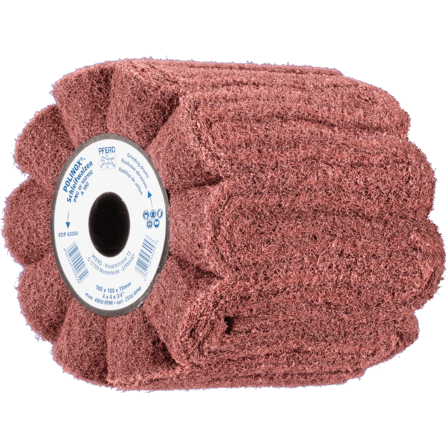 POLINOX brúsne bubny sú obzvlášť vhodné na prácu na veľkých plochách. Nezvarený abrazív je vyrobený z niekoľkých veľmi vlnito usporiadaných pruhov nezvareného abrazívneho materiálu, navinutých okolo jadra. Vlnitá štruktúra nezvareného abrazívneho materiálu umožňuje bezproblémové čistenie povrchov.