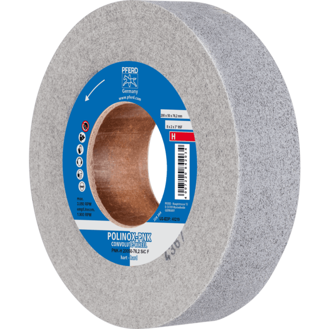 POLINOX konvolútne kotúče PNK vytvárajú matné povrchové úpravy. POLINOX konvolútne kotúče PNK pozostávajú z spirálovito tvarovaného, netkaného abrazíva, ktoré je navinuté okolo jadra a napenené. Pena podporuje netkanú zložku a pozitívne ovplyvňuje jej životnosť a abrazívny výkon. Tento konkrétny spoj vytvára netkané kotúče s veľmi dobrou povrchovou úpravou, vysokou rýchlosťou odstraňovania materiálu a dlhou životnosťou nástroja. Tieto vlastnosti sú obzvlášť zjavné pri odhrotovaní, miešaní, dokončovaní a leštení mäkkých kovov, zliatin a vysoko zliatinových oceľí, okrem iného aj titánových zliatin. Kotúče sa môžu používať na stacionárnych strojoch a stolových brúskach, ako aj na prenosných pohonoch, ako sú priame brúsky. Úpravou kotúčov je možné prispôsobiť ich geometriu špeciálnym pracovným kusom. Tvrdá verzia s veľmi vysokou rýchlosťou odstraňovania materiálu, dobrou pevnosťou hrán a dlhou životnosťou nástroja pre stredne až ťažké aplikácie odhrotovania a leštenia.