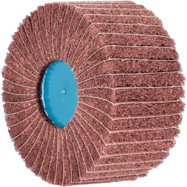 POLINOX neosadené brúsne kotúče pozostávajú z netkanej polyamidovej abrazívnej hmoty, do ktorej je integrovaný abrazívny zrn. Netkané abrazívne lamely sú usporiadané radiálne. Dlhá životnosť náradia je dosiahnutá hustým usporiadaním lamiel. Nástroj je navrhnutý na prácu na stredne veľkých plochách s rýchlosťou nastaviteľnými uhlovými brúskami a brúskami na zvarové švy a môže byť namontovaný priamo na vretienko pohonného systému bez potreby dodatočných upínacích zariadení.